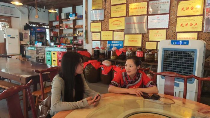 12日上午,小分隊成員在古鎮(zhèn)隨機(jī)采訪到身著土家族傳統(tǒng)服飾的“10后”姐妹花,據(jù)了解到,姐姐是土家族,妹妹是漢族,姐姐從小生活在黔江區(qū),姐姐說:“我們家里還是更多的有著土家族自己的習(xí)俗,但是有些時候會和漢族差不多,并且在學(xué)校里我們也是接受和漢族一樣的教育,學(xué)校也并沒有開展少數(shù)民族相關(guān)的課程。”當(dāng)被問道關(guān)于土家族服飾時,姐姐說:“我覺得土家族的服飾很漂亮,這是我們的民族文化,我穿著它來拍照,也是想讓外地游客們感受到土家族服飾的魅力,讓土家族文化被更多人知道!”