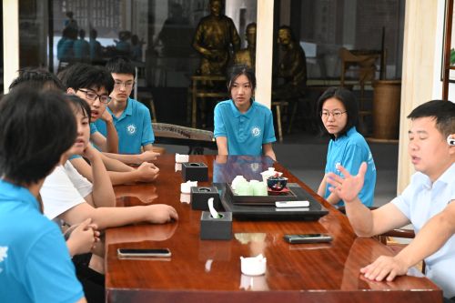 圖為實踐隊與茶園經(jīng)理座談,蔡金兵供圖