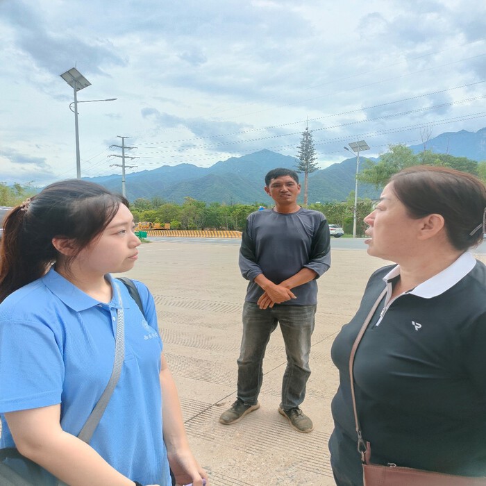 實踐團隊向負責人了解土壤結構和物聯網設備信息。杜欣怡攝