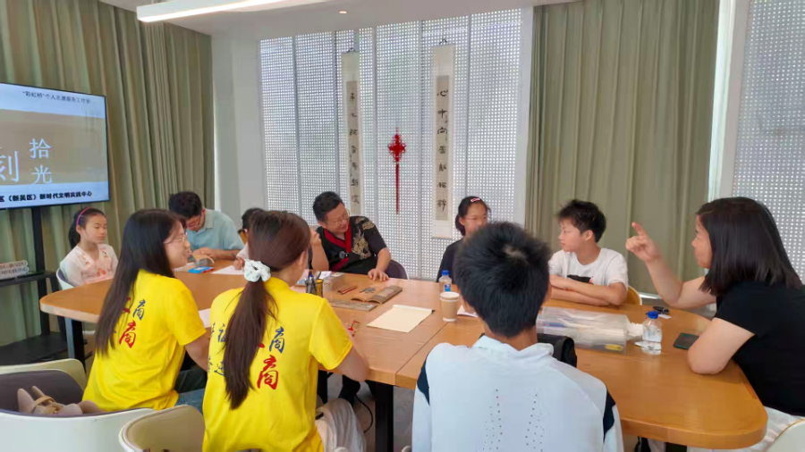 走進無錫國際志愿者會客廳,隊員們便感受到了一股專注而沉靜的氛圍。在這里,無錫竹刻非遺傳承人談聞安老師向大家展示了自己帶來的竹刻作品,瞬間吸引了所有人的目光。