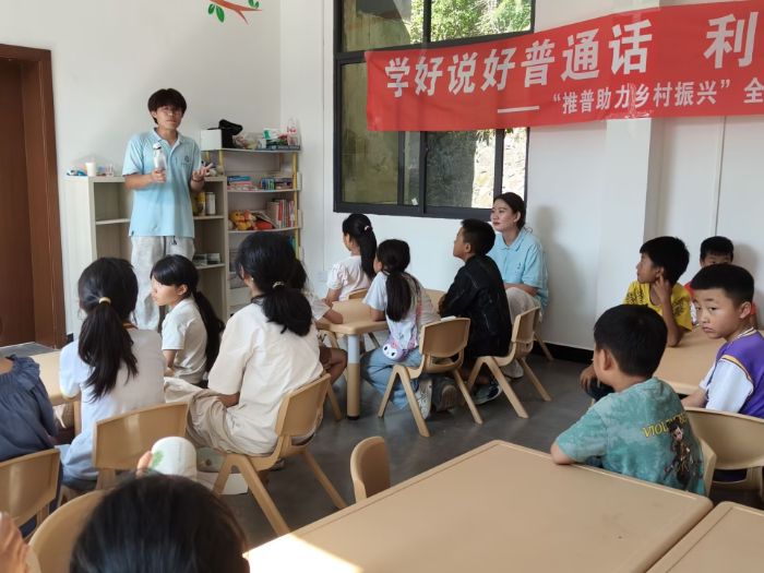 為響應(yīng)“推普助力鄉(xiāng)村振興”號(hào)召,打通國(guó)家通用語(yǔ)言普及的“最后一公里”,7月15日至16日,威海職業(yè)學(xué)院智慧學(xué)院“青為”志愿服務(wù)隊(duì)跨越2300公里,深入貴州省清鎮(zhèn)市王莊布依族苗族鄉(xiāng)小坡村兒童之家,開(kāi)展為期兩天的“護(hù)苗”趣味課堂活動(dòng)。隊(duì)員們精心設(shè)計(jì)系列課程,將普通話推廣巧妙融入游戲與實(shí)踐,在歡聲笑語(yǔ)中守護(hù)童真,為鄉(xiāng)村兒童的語(yǔ)言能力提升與文化視野拓展注入青春活力。
