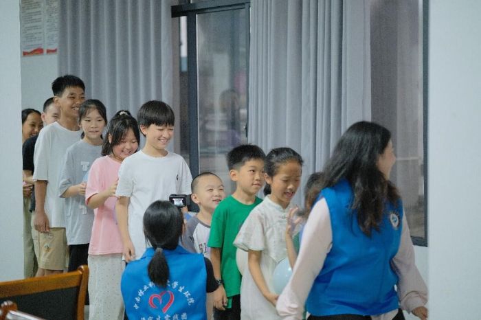 “我叫龍穎,今年9歲。”扎著羊角辮的小女孩躲在奶奶身后,細弱的聲音像被風吹散的蚊蚋。活動伊始,社區的孩子們像一群受驚的小麻雀,圓溜溜的眼睛里盛滿好奇,卻又裹著一層怯生生的警惕。直到幾輪“氣球接力”游戲過后,孩子們緊繃的小臉終于綻開笑容,咯咯的笑聲像打翻的銀鈴在活動室里跳躍,原本拘謹的空氣瞬間“熱”了起來。隊員們T恤后背悄然洇開的深色汗漬,成了這場破冰之旅最鮮活的“勛章”。