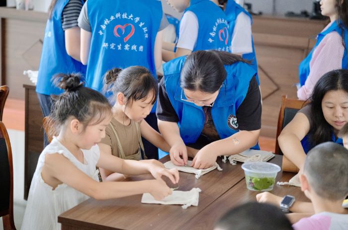 社區院子里的老樟樹枝繁葉茂,濃密的樹蔭下成了天然的手工坊。隊員們小心鋪開深藍的藍靛葉、火紅的楓香樹葉,孩子們的小手迫不及待地伸過來,觸摸著這些帶著泥土與草木氣息的葉片,感受著葉脈粗糙的紋理。搗碎、浸染、晾曬……當孩子們看到自己親手用樹葉拓印出的獨一無二的布片時,興奮得哇哇大叫。他們舉著染得深深淺淺、宛如抽象畫的布片,驕傲地向所有人宣告:“這是我做的!有木頭的味道!”汗水混著植物汁液沾滿了稚嫩的指尖,那份源自土地的“芬芳”與創造的喜悅,如同老樟樹的年輪,深深印在了他們的記憶里。