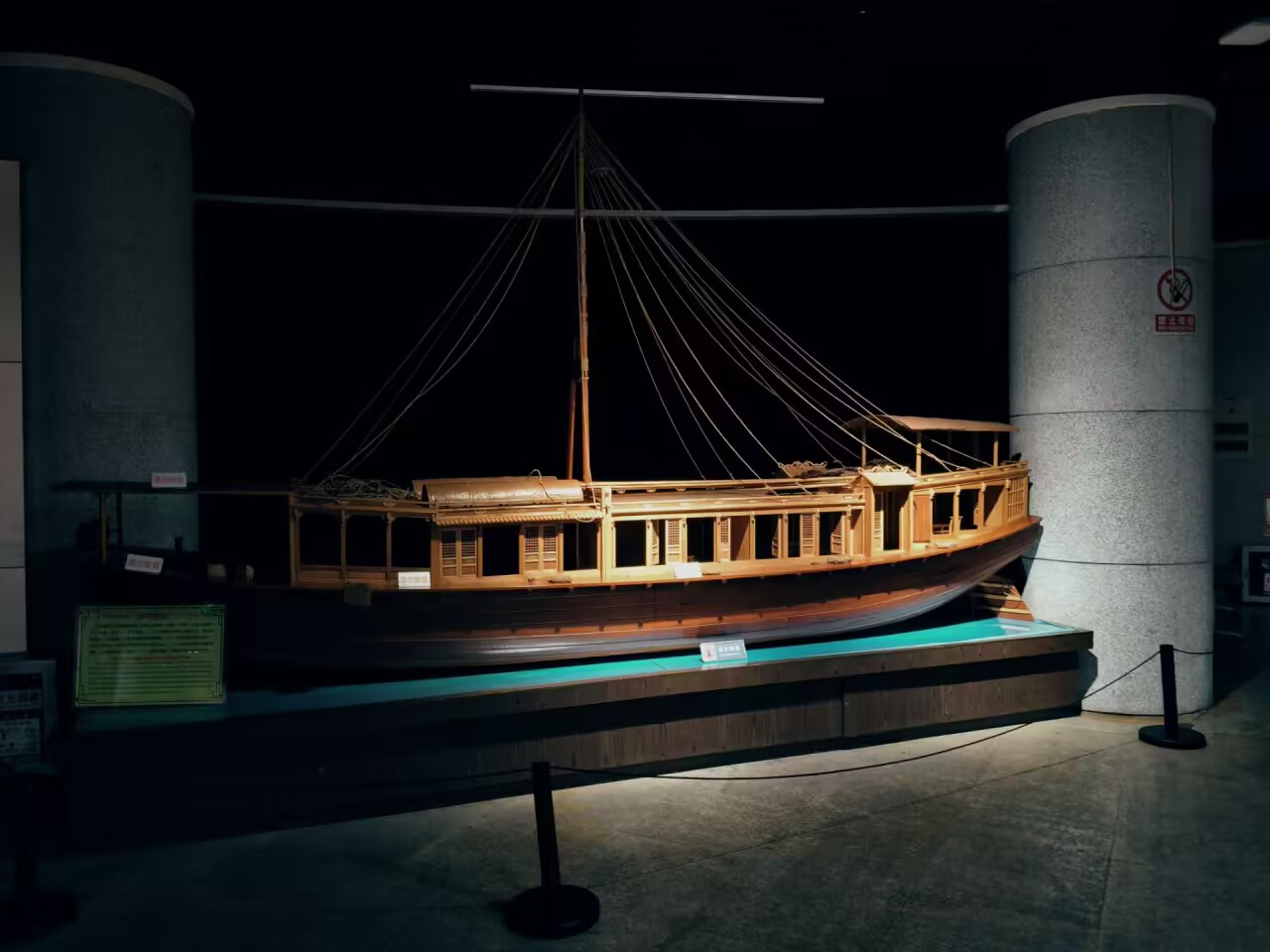 運河主題展廳成為重要一站。在運河遺韻廳,柳孜遺址復(fù)原場景中散落的船板與瓷器,讓人直觀感受到隋唐大運河的昔日繁華;被稱為 “淮北舵” 的唐代貨船尾舵,見證了古代船舶技術(shù)的突破性發(fā)展;長52米、高2.6米的東陽木雕壁畫,系統(tǒng)展現(xiàn)了運河開鑿、巡游、漕運等歷史場景。這一切不僅彰顯了大運河作為南北交通動脈的重要地位,更體現(xiàn)出開放包容、互聯(lián)互通的文化特質(zhì),紅色文化中團結(jié)協(xié)作、共創(chuàng)輝煌的理念一脈相承。