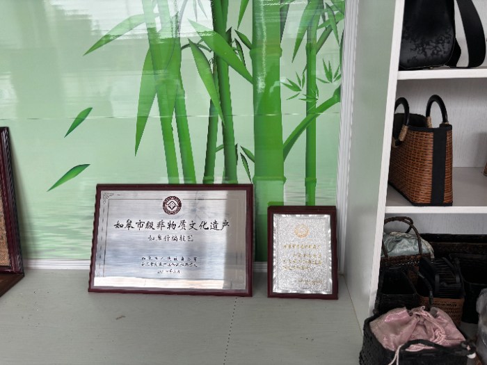 圖為如皋市為如皋竹編技藝頒發的非物質文化遺產證書。(多彩大學生網通訊員 張升鶴攝)