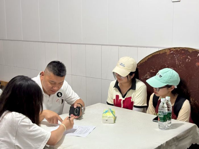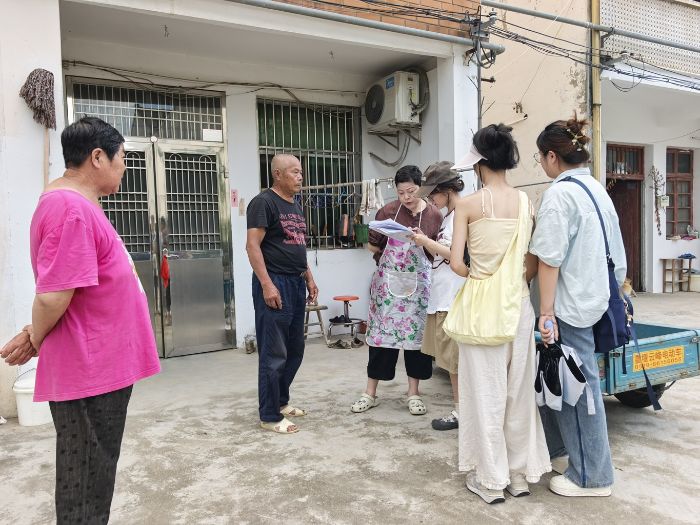 調研首日,南京財經大學“連心橋”無錫小分隊嘗試通過發放問卷附贈獎品的方式收集信息,但收效甚微。面對這一情況,實踐隊及時調整策略,深入洛社鎮錢巷社區,開展入戶走訪。為了贏得村民信任,小分隊主動說明調研目的與身份,并針對不同人群靈活采用問卷形式:對智能手機操作熟練的受訪者使用電子問卷;對操作不熟練的長者則使用紙質問卷,結合無錫方言進行一對一講解與提問,這種方式顯著提升了溝通效率和問卷質量。