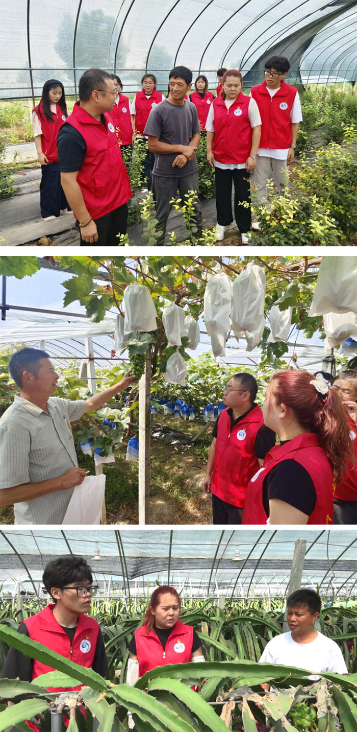產業探秘,見證“綠色經濟”蓬勃之態 在塌陷區治理區域,團隊實地參觀了光伏發電與農業種植的"農光互補"模式。水上光伏板下,魚蝦養殖池波光粼粼,實現"板上發電、板下增收"的雙重效益;蘑菇種植基地內,數字化溫控系統精準調節菌包生長環境,日產鮮菇超100公斤;葡萄、火龍果、藍莓等種植基地則通過"采摘經濟+電商直播"拓展銷路,帶動周邊300余戶農民就業。"我們與高校合作研發的深加工產品,讓藍莓附加值提升了3倍!"在藍莓種植基地,負責人向隊員們激動的說。實踐團還走進米面加工基地,了解傳統產業通過技術改造實現智能化升級的轉型故事。隊員們結合所學知識,為基地設計成本管控方案,獲企業高度認可。