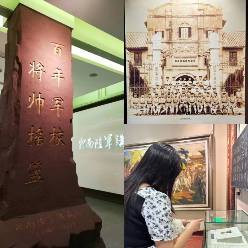 最后一站,實踐團來到了云南陸軍講武堂。這座被譽為 “將帥搖籃” 的軍事院校,培養了無數杰出的軍事人才。走進講武堂,成員們參觀了校史陳列館,了解了其創辦背景、教學內容和培養出的優秀將領。蔡鍔、朱德、葉劍英等一大批著名軍事家都曾在此學習和任教。他們在這里接受了先進的軍事教育,為日后投身革命事業奠定了堅實基礎。