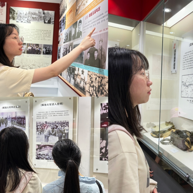 接著,團隊成員們來到抗戰勝利紀念堂、國立西南聯合大學舊址。抗戰勝利紀念堂承載著全民族抗戰的歷史記憶。紀念堂莊嚴肅穆,成員們懷著崇敬的心情走進其中。一幅幅反映抗戰時期的圖片、一件件珍貴的文物,生動地展現了中國人民在抗日戰爭中頑強抵抗、不屈不撓的精神。成員們在參觀過程中,深刻感受到了抗戰精神的偉大力量,也更加堅定了為實現中華民族偉大復興而努力奮斗的決心。