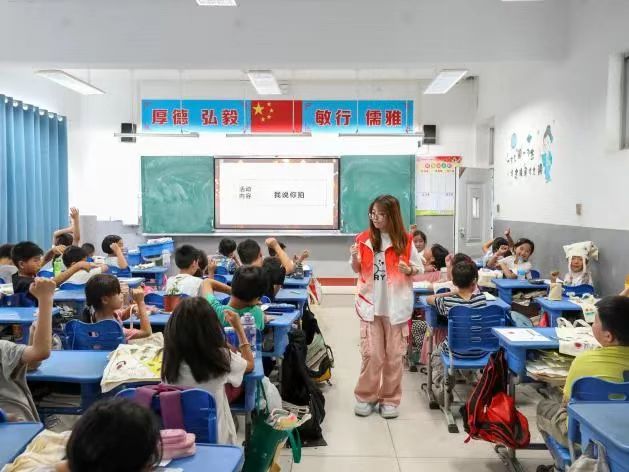 實(shí)踐團(tuán)隊(duì)在韭園鎮(zhèn)第三中心小學(xué)開(kāi)展“七彩課堂”支教活動(dòng)和推廣普通話(huà)系列活動(dòng),精心開(kāi)設(shè)了思想引領(lǐng)、文明生活、身心健康、快樂(lè)學(xué)習(xí)、藝術(shù)素養(yǎng)、文化傳承、科技創(chuàng)新七大特色課程,為鄉(xiāng)村教育振興注入活力,為當(dāng)?shù)?200 余名留守兒童帶來(lái)了別樣的暑假體驗(yàn)。
