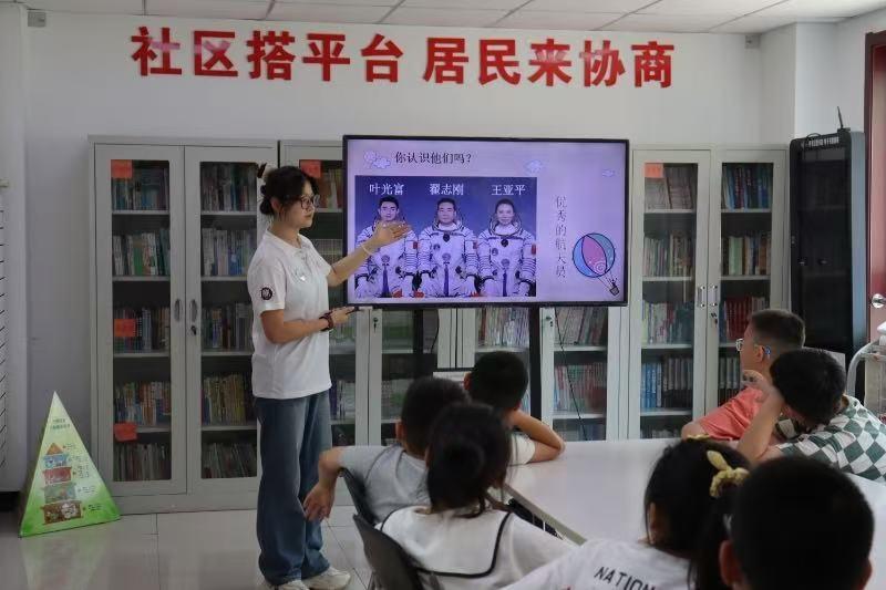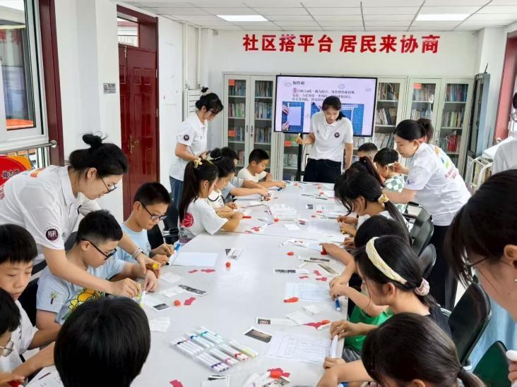 圖為兒童在實踐團成員引導下制作火箭。“星語心寰”實踐團攝