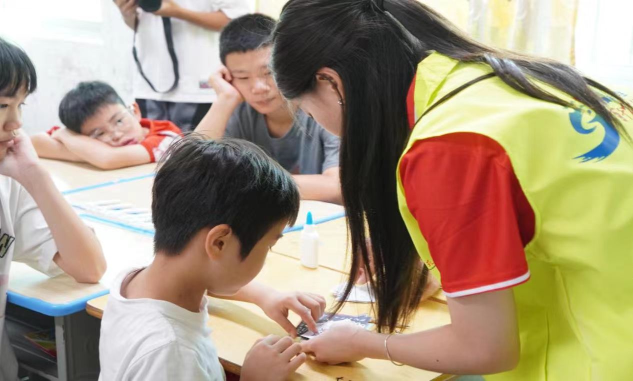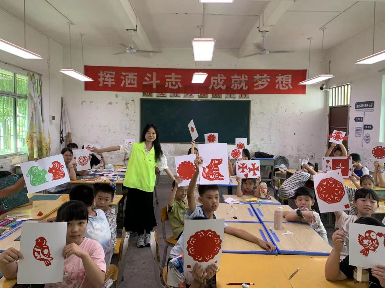 在六天的義教活動(dòng)中,突擊隊(duì)累計(jì)開展課程16課時(shí)。學(xué)生們不僅收獲了拼貼畫、蠟染、剪紙等手工作品,更是在非遺傳承中增強(qiáng)了文化認(rèn)同,在藝術(shù)創(chuàng)作中提升了審美素養(yǎng)。“繪美客韻”突擊隊(duì)隊(duì)長鄭嘉誼表示:“我們帶來美育課程的目的,不僅是想讓同學(xué)們學(xué)手工、唱歌謠,更想激發(fā)他們的創(chuàng)造力,突破思維的邊界,使他們明白,在語數(shù)英等有標(biāo)準(zhǔn)答案的學(xué)科外,還存在無標(biāo)準(zhǔn)答案的創(chuàng)作形式,從而培養(yǎng)他們質(zhì)疑能力與獨(dú)立思考能力。”結(jié)課當(dāng)天,孩子們抱著自己的作品圍在老師身邊,還有學(xué)生牽著老師的手說:“哥哥姐姐一路順風(fēng),謝謝你們這幾天的教導(dǎo),我會(huì)想你們的。”稚嫩的話語里滿是純真與不舍。