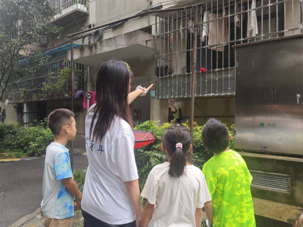 守護(hù)家園環(huán)境,筑牢安全基石。實(shí)踐團(tuán)隊(duì)協(xié)助社區(qū)工作人員,精心組織了一場生動有趣的“小小院落觀察家”實(shí)踐活動,積極引導(dǎo)兒童參與社區(qū)治理,為老舊社區(qū)文明建設(shè)注入新活力,同時有效提升了孩子們的觀察力和創(chuàng)造力。