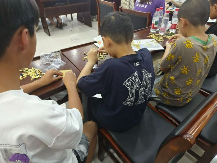 (圖為7月14日,課堂上孩子們專注地進(jìn)行三峽大壩積木搭建。石瑜供圖)