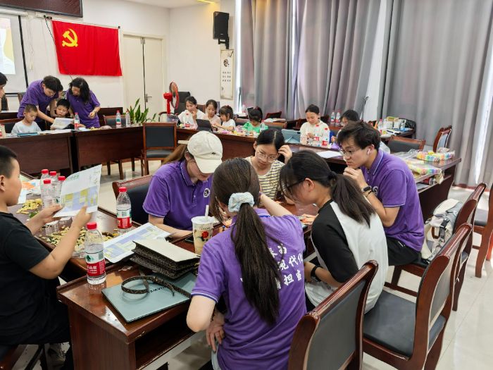 (圖為7月14日,“情系鹽城鄉(xiāng)村 愛撒支教課堂”暑期社會(huì)實(shí)踐團(tuán)指導(dǎo)老師霍藝觀看并幫助孩子們完成作品。葛津榕供圖)