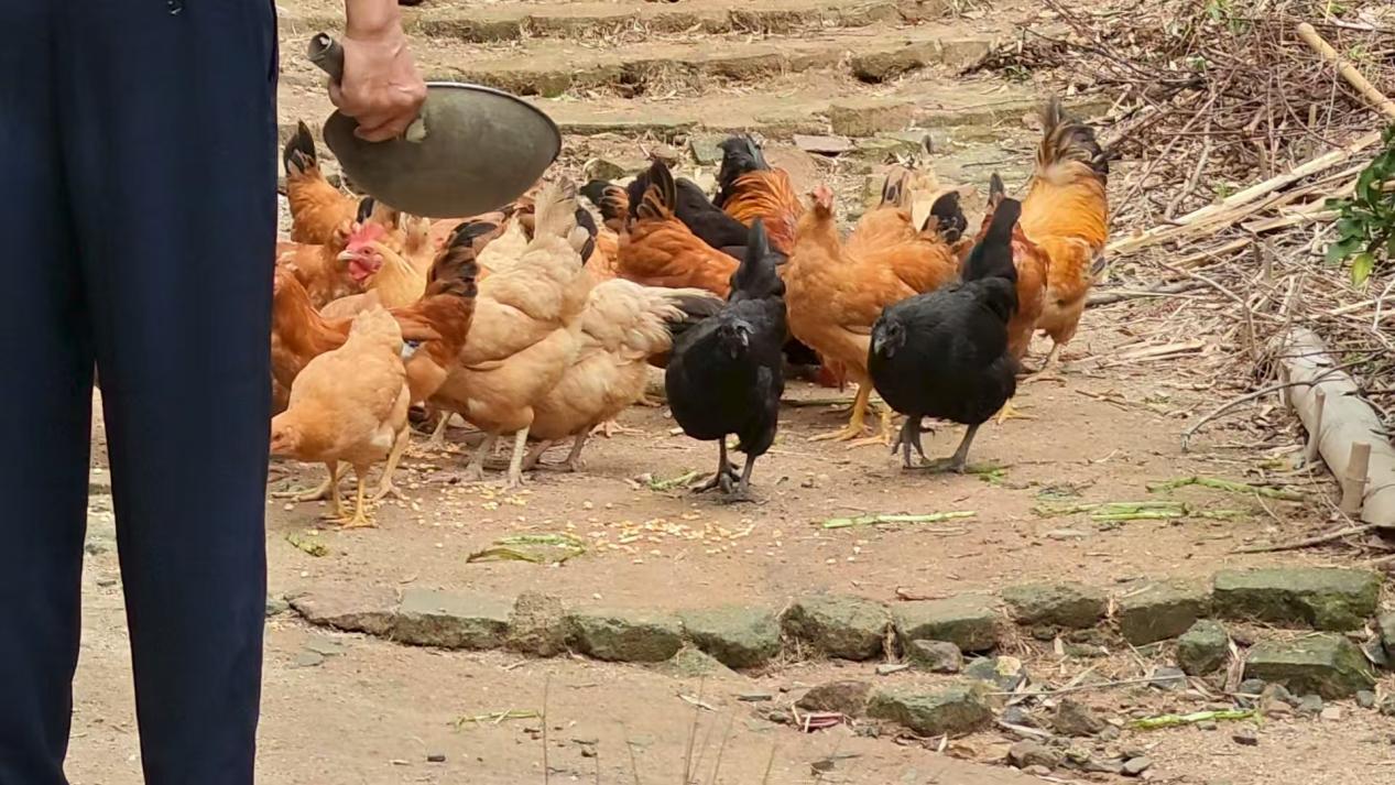 當年春天,扶貧隊送來50只皖南土雞苗,還有消毒水、飼料和簡易雞棚搭建材料。看著毛茸茸的雞苗在院子里啄食,陳嬸竟露出了久違的笑容,主動幫著包伯給雞添水喂食。“從那天起,她好像有了牽掛,精神頭都好了不少。”包伯說,妻子的變化讓他更堅定了養好雞的決心。