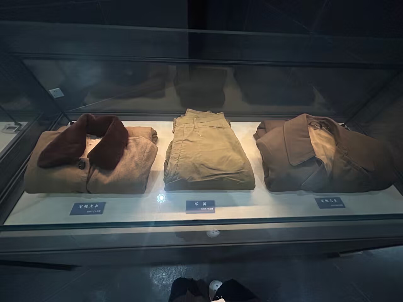 圖為黃橋紀念館內軍衣、軍褲圖 劉舒供圖