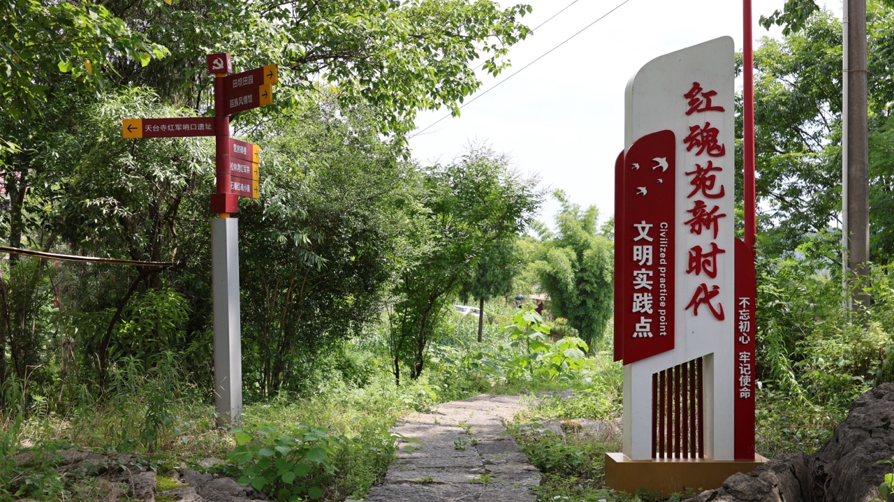 幾經輾轉,小隊成員們最終來到了紅魂苑。這同樣是一處極具分量的紅色精神地標。它位于寧靜的村落中,青山環繞,見證著歲月的變遷。這里曾是一位紅軍烈士的埋葬之地,當地人為了紀念這位紅軍烈士,銘記那段崢嶸歲月,便依托此處打造了紅魂苑。