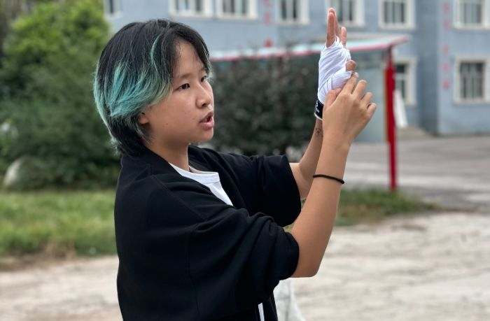 為豐富體育運動內容,白老師結合自身所學本領,為邊疆學生開展特色拳擊課程。白老師嚴格遵循安全規程,以形象的比喻讓孩子們掌握拳擊基本動作要領,她演示前手刺拳如閃電,孩子們繃緊核心肌群奮力擊打靶心。“出拳要快,眼神要兇!”騎馬小將葉爾多斯道,所有孩子在最后的組合拳展示中共同鏗鏘有力的喊出節拍,拳擊精神中的“尊重”與“堅韌”悄然扎根。
