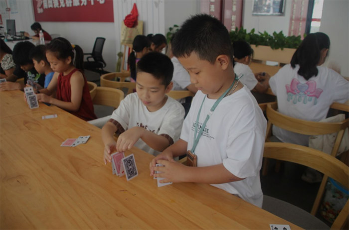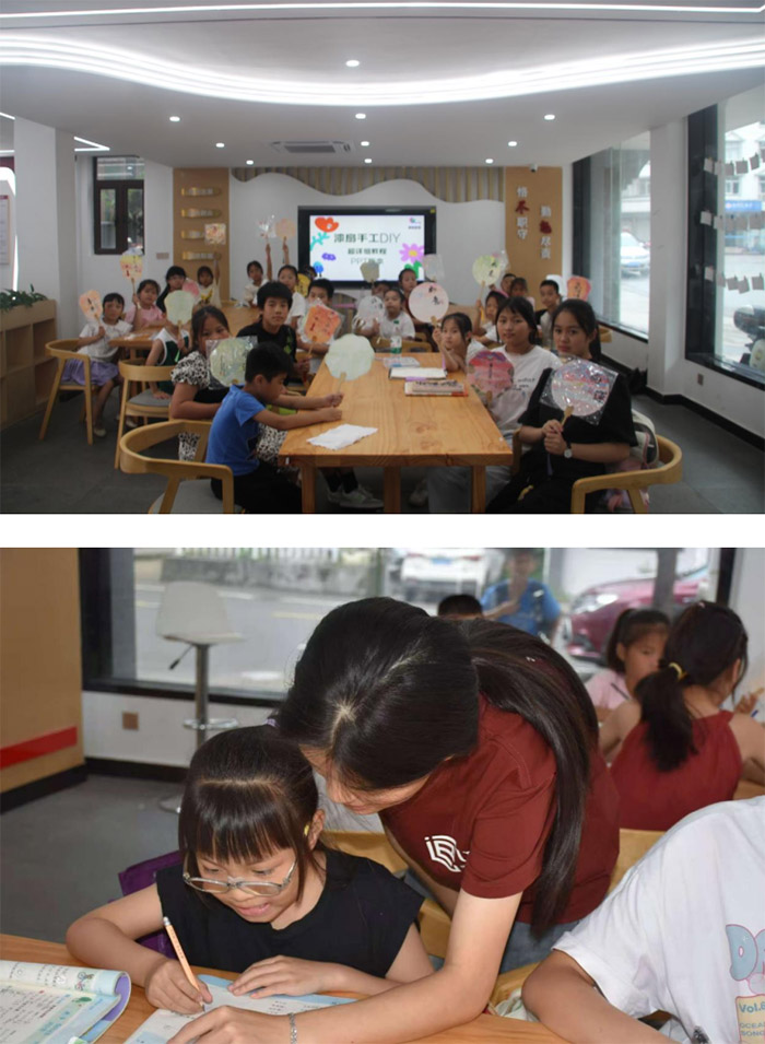 山徑通幽:青春腳步丈量振興之途 穿越浙南的蜿蜒山徑,實踐團成員們將蓬勃朝氣刻入山野畫卷。抵達南田后,團隊迅速鋪開教育“芯”版圖。志愿者老師一堂別開生面的心理健康教育課,將心理韌性寓于“摞紙牌”小游戲中,引導孩子們在一次次嘗試與倒塌間,磨礪面對挫折的勇氣與耐心。在“漆扇手工DIY”美術課上,志愿者老師引導孩子們在素白扇面揮灑色彩,指尖流轉間,傳統手工藝煥發新生,無聲地滋養著創造精神與審美情趣。課后細致的作業輔導,更是團隊成員為孩子們掃清學習障礙的溫暖見證,每一次恍然大悟的笑容,都是對初心最美的回響。