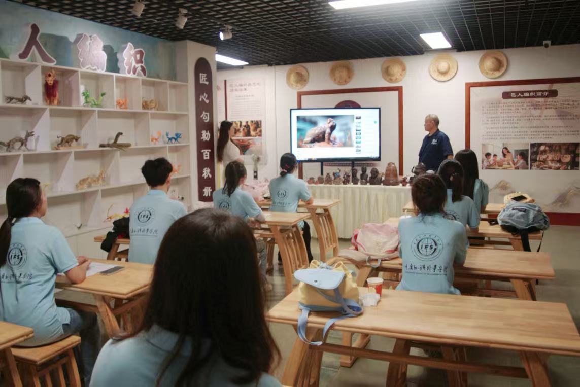 習近平總書記2022年7月13日在新疆考察時說:“要加強非物質文化遺產保護傳承,把各民族優秀傳統文化發揚光大。”2025年7月18日,重慶外語外事學院英語學院“萬”“項”更新齊振興實踐團走進巴人文創產業園,開啟一場與非遺文化、泥塑藝術的深度對話。