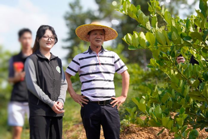 荒地盤活:共富種子破土萌新綠 在仁里村村委辦公室中,村委委員鄭干華向實踐團講述產業蛻變歷程。2023年11月,村集體響應鄉村振興號召,整合閑置荒地資源,借鑒成功經驗啟動香水檸檬種植項目。短短一年半,基地規模從試驗田迅速擴張至百畝,凝聚村集體近百萬元的投入。這片曾經的撂荒地,如今已發展為承載共同富裕希望的"綠金"沃土,實現了村集體經濟從探索到壯大的關鍵跨越。