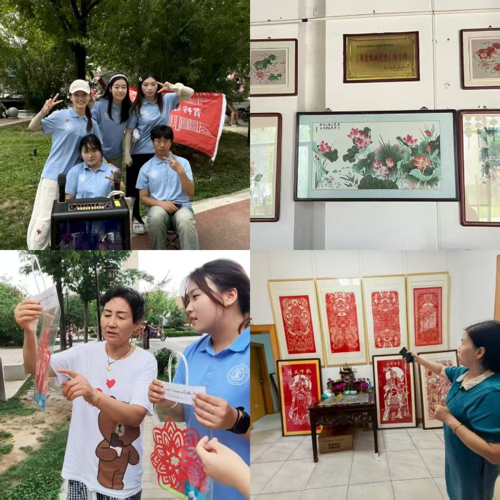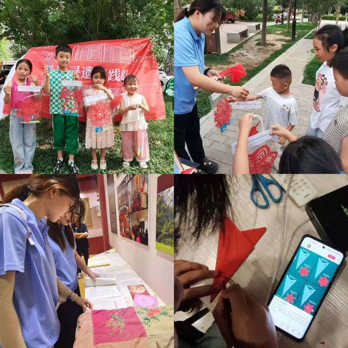 實踐團將傳承的種子播撒在煙火人間。在八云塔廣場,隊員們將所學化為行動,設立非遺攤位,向過往行人特別是孩子們贈送親手制作的剪紙作品。鮮艷的色彩、獨特的造型吸引著童真的目光,隊長生動講述著剪紙背后的歷史淵源與文化寓意——那些承載婚喪嫁娶、節日慶典的方寸紙片,是流淌的民俗血脈。孩子們手捧剪紙綻放的笑臉,正是非遺扎根未來沃土的最美注腳。文化館內,集賢鼓樂穿越時空的唐宋遺音震撼心靈;財神廟中,古樸建筑與明代碑刻訴說著民間信仰的深厚積淀。