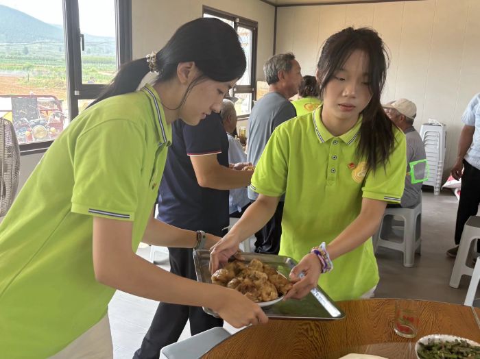 除了健康守護,服務隊更關注老人生活細節,用貼心服務織密保障網。針對高血壓、糖尿病等常見病,志愿者開起“大白話”講座,把“癥狀識別”“飲食調控”等專業知識講得通俗易懂;講座后擺起咨詢臺,俯身為行動不便的老人答疑,直到大家點頭說“明白了”。老年食堂里更是暖意融融:志愿者提前擺好碗筷、引導就坐,給高齡或腿腳不便的老人端飯遞湯,邊陪吃邊嘮家常,讓食堂里的歡聲笑語蓋過了碗筷碰撞聲。從健康知識到生活照料,點點滴滴的服務為老人撐起了安穩生活的“保護傘”。