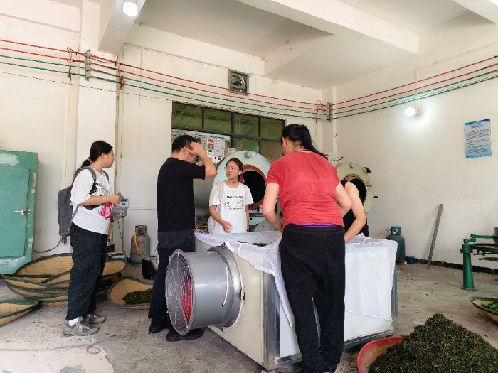 圖為茶企老板帶領團隊成員參觀制茶過程。吳雨佳供圖