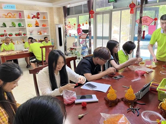 在手工坊,實(shí)踐團(tuán)成員與殘疾人朋友們圍坐一堂,共同進(jìn)行手工串珠。沒(méi)有生硬的指導(dǎo),只有耐心的示范和輕聲的交流。