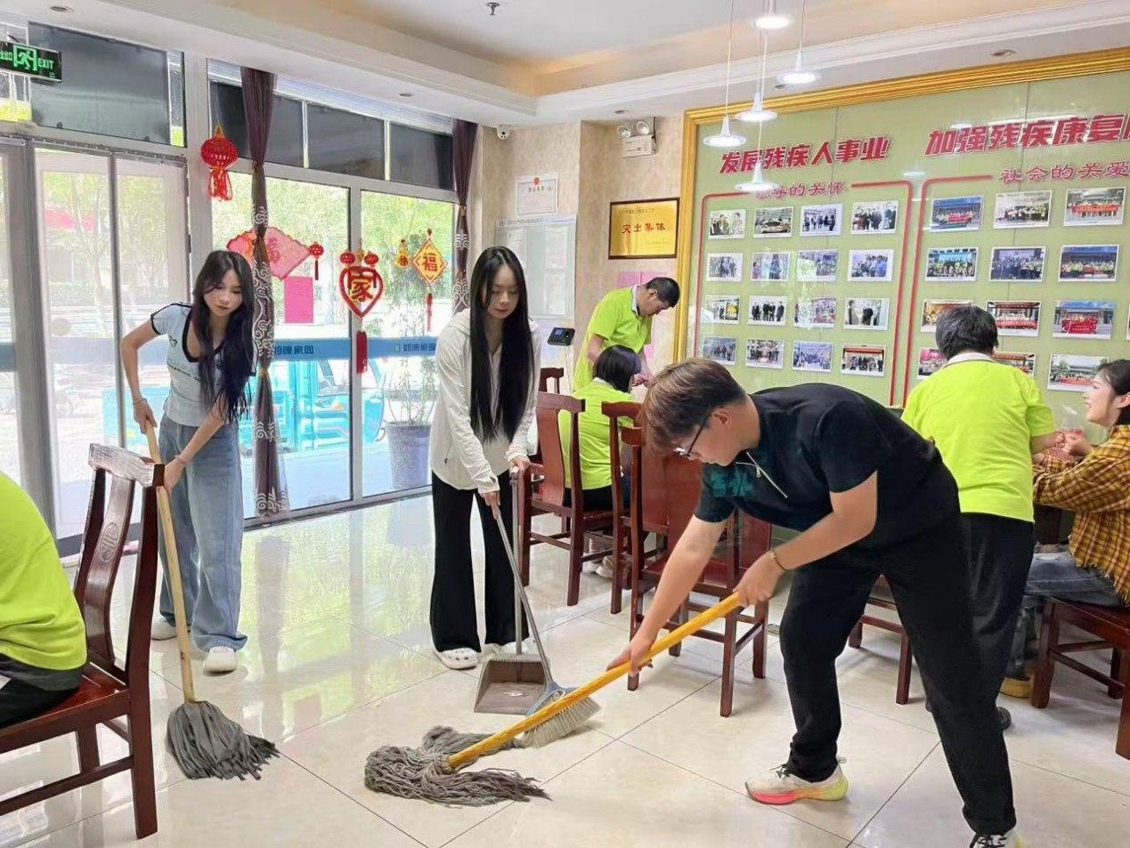 真正的關(guān)心體現(xiàn)在點(diǎn)滴之中。志愿者們主動(dòng)承擔(dān)起中心的日常清掃工作,拿起掃帚和拖把,認(rèn)真清潔活動(dòng)室的每個(gè)角落。他們用最直接的行動(dòng),為這個(gè)“家”營(yíng)造著整潔與溫馨,讓關(guān)懷在平凡的勞動(dòng)中傳遞。