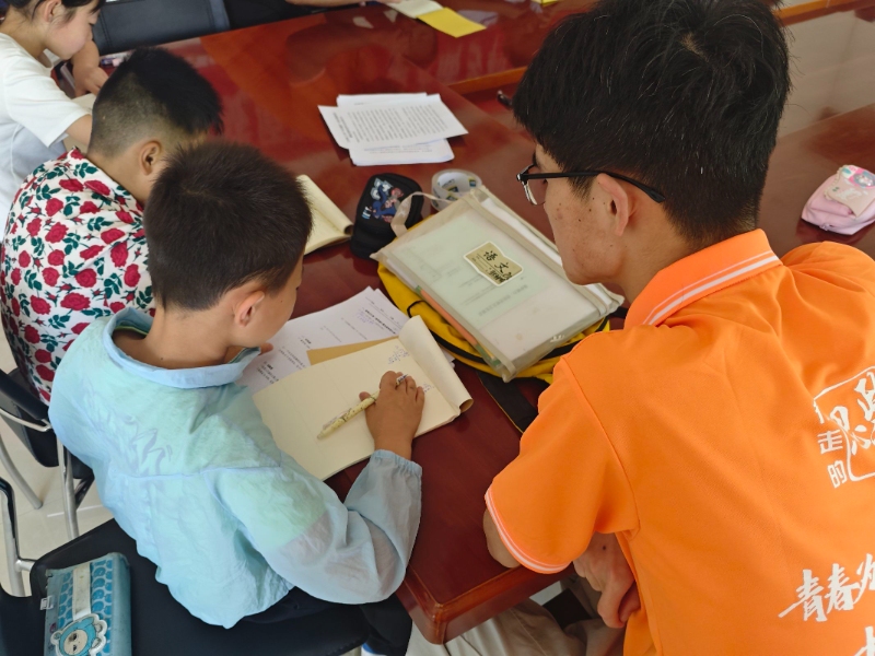 課堂上,志愿者以小組模式開展語文、數(shù)學、英語個性化輔導,趣味互動幫孩子們攻克難點,六年級學生褚佳怡說:“大哥哥大姐姐講題特別清楚,難題一下子就懂了!”結(jié)合夏季特點,“安全伴我行”主題教育通過警示短片、模擬演示等形式,讓防溺水、用電及交通安全知識入腦入心;普通話課程則通過發(fā)音糾正、朗讀比賽等,助力孩子們突破自我,曾靦腆的姬晗主動參與,令人欣慰。