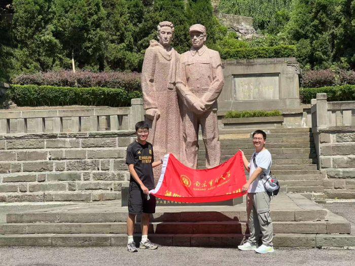 7月8日,學習小分隊首站踏入渡江戰役紀念館。武器展陳區里,銹跡斑駁的步槍、磨損的船槳有序陳列,講解員對烈士犧牲細節的講述,讓隊員直觀感知革命的犧牲。7月10日,小隊轉場雨花臺烈士陵園。在紀念館多媒體放映廳,一部講述雨花英烈事跡的紀錄片緩緩播映。屏幕上,鄧中夏在獄中仍堅持學習、何寶珍面對酷刑始終堅貞不屈的畫面,讓在場隊員深受震撼。參觀結束,團隊成隊員對紅色文化有了具象化的認知。他們在渡江戰役紀念館觸摸那艘布滿勒痕的“渡江第一船”船槳,又在雨花臺烈士紀念館凝視鄧中夏的獄中詩稿時,突然領悟了紅色文化的一脈相承:雨花臺的青石板上,先烈們把“信仰”刻進生命倒計時;長江的波濤里,戰士們將“希望”綁在船舷上。這些“星火”澆筑成革命精神的脊梁,成為引領人們向前的精神豐碑。