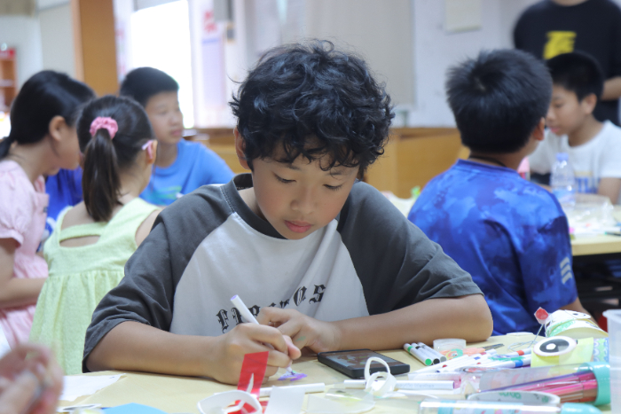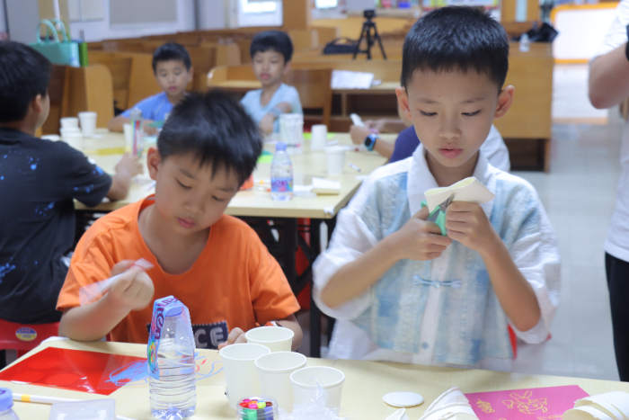 圖:夏令營成員認真學習魚燈手工制作(王言言 攝)