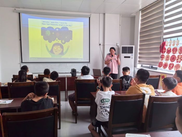 圖為英語老師講解英語繪本,勾藝佳供圖