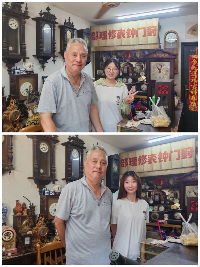 本次實踐聚焦“蘇州的聲音,團隊走訪了平江路、觀前街、網師園、寒山寺等文化地標,同時深入葑門橫街等市井生活區。他們用專業設備,用心捕捉并記錄下那些承載城市記憶的獨特聲響:評彈藝人指尖流淌的三弦清音、昆曲水袖翻飛間的婉轉唱腔、園林深處清脆的鳥鳴與穿林打葉的風聲。尤其令人印象深刻的是,在葑門橫街,隊員們完整收錄了售賣“水八仙”之一雞頭米的老手藝人那一聲聲韻味悠長、極具辨識度的吳語吆喝——“阿要雞頭米……”,這充滿煙火氣的叫賣聲,瞬間喚起了無數老蘇州人的共同記憶。而在橫街深處一家不起眼的鐘表修理鋪,鏡頭則對準了專注修復傳統蘇鐘的老匠人。伴隨著細小的金屬工具與精密齒輪的輕微敲擊、調試聲,隊員們見證并記錄下這份需要極大耐心與精湛技藝的“時光守護”。這些聲音共同構成了立體的姑蘇聲景記憶。
