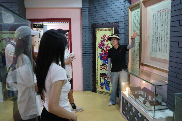 圖為講解員向實踐隊員講解木版年畫歷史的場景。 費越 供圖。