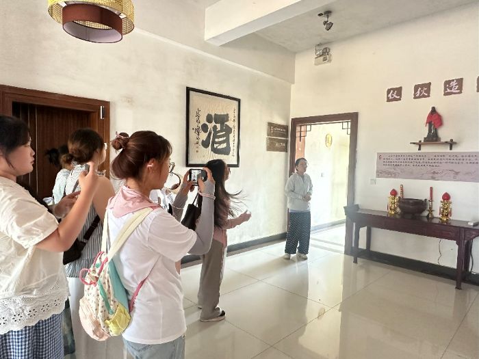 在工廠講解員的引領下,實踐團首先參觀了黃酒歷史文化館。館內豐富的展品和詳實的史料,生動地展現了黃酒這一傳統飲品的悠久歷史和深厚文化底蘊。從黃酒的起源傳說到歷代釀造工藝的演變,再到古南豐黃酒獨特的釀造技藝傳承,隊員們沉浸其中,深刻感受到了黃酒文化的魅力。一位團隊成員感慨道:“以前只知道黃酒是一種傳統美酒,通過這次參觀,才真正了解到它背后承載著如此豐富的歷史和文化內涵,這讓我們對接下來的包裝設計工作有了更深的責任。”