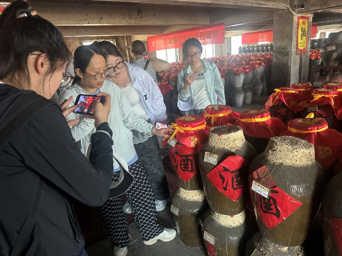 隨后,實踐團走進工廠車間和儲物車間,實地觀摩了黃酒的釀造過程和儲存方式,F代化的生產設備與傳統釀造工藝的完美結合,讓隊員們大開眼界。在釀造車間,工人們熟練地操作著設備,嚴格把控每一道工序,確保黃酒的品質。隊員們認真觀察,不時向工作人員提問,深入了解釀造工藝的細節和關鍵技術。在儲物車間,一排排整齊擺放的酒壇散發著醇厚的酒香,隊員們了解到黃酒的儲存條件對其口感和品質有著重要影響。這次實地參觀,不僅讓隊員們對黃酒的生產流程有了直觀的認識,也為他們在包裝設計中融入功能性和文化性元素提供了靈感。