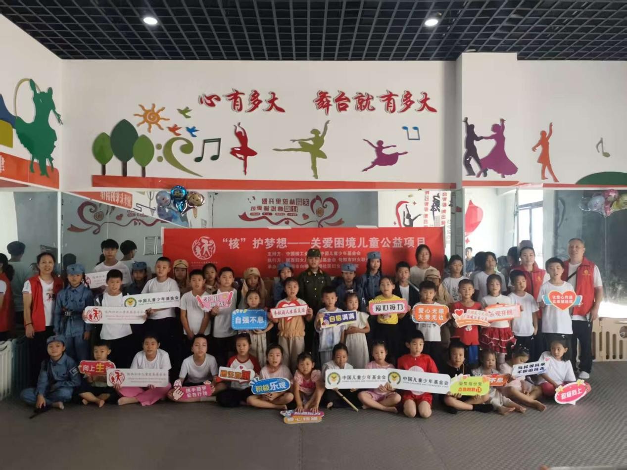 核”護夢想——關愛兒童主題活動迎第一個環節。校志愿者與當地志愿者一同帶領孩子們唱起了《歌唱二小放牛郎》,稚嫩的歌聲在活動室里回蕩,有人邊唱邊輕輕打著節拍,有人望著墻上“勇敢”“守護”的標語,眼神格外認真。