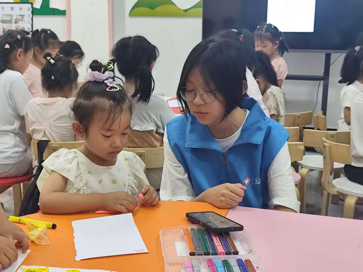 圖為刮畫成品 靜思與探索:閱讀區里,小朋友們專注聆聽志愿者講解童話繪本,好奇地詢問“后來呢?”“后來呢?”;五子棋桌上,小朋友與志愿者仔細思考,緩下棋子。