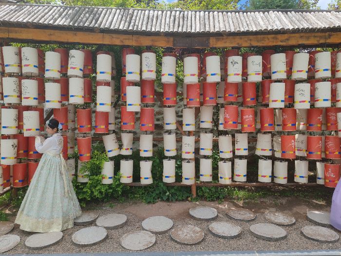盛夏酷暑未減游客熱忱,民俗園隨處可見身著明艷朝鮮族服飾的游客——或穿梭于青瓦白墻的百年院落,或休憩于飛檐翹角的傳統(tǒng)建筑前,斑斕的民族服飾流動成文化風(fēng)景線。一位女性受訪者在訪談中感慨:“身穿傳統(tǒng)服裝是一種很新奇的體驗,就好像自己曾生活在那段歲月里一樣。”這樸素的心聲,印證了民俗園傳承民族文化、增強文化認(rèn)同的深層價值。對傳統(tǒng)服飾文化的活化利用,不僅吸引了源源不斷的客流,讓更多人了解、喜愛朝鮮族文化;更催生出周邊服裝租賃、專業(yè)攝影等相關(guān)產(chǎn)業(yè)的發(fā)展,讓民俗園在文化的滋養(yǎng)下煥發(fā)勃勃生機。