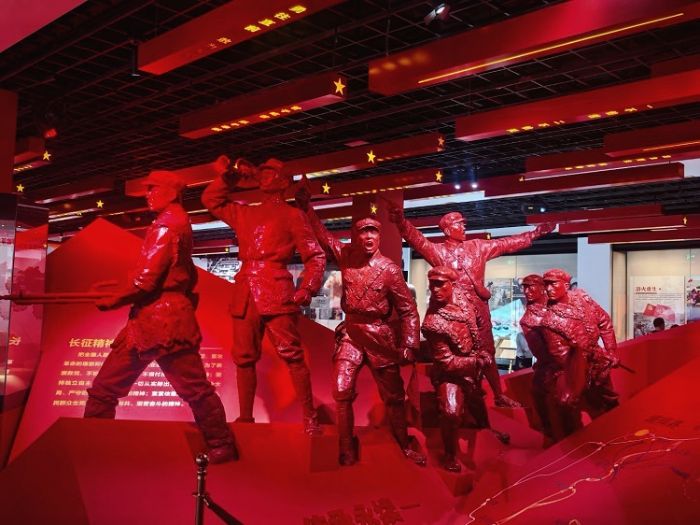 踏入青海省博物館紅色展區,一組西路軍主題群雕瞬間抓住目光。戰士們或持槍沖鋒或俯身救護,雕塑表面的“硝煙紋理”與“肌肉張力”,將“西征壯舉”的熱血與悲壯,具象成可觸摸的精神豐碑。實踐團隊成員繞雕塑慢行,“看到戰士護著戰友的姿態,突然懂了‘西路軍精神’不只是文字,是一群人的生死與共”。