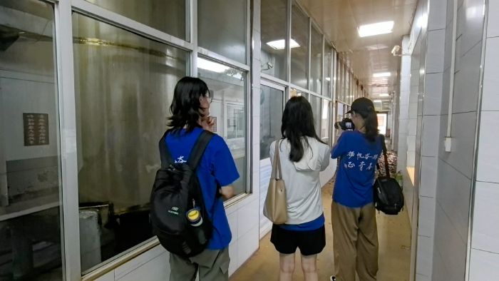 首站,實踐隊聚焦袁家村村史館。館中留存的照片與文字講述著袁家村起步、發展的關鍵時段,呈現這這座古老村莊轉型的脈絡。“二十世紀七八十年代,袁家村在老書記郭裕祿的帶領下,憑借著村辦企業成了陜西著名的富裕村。但是九十年代之后村辦小企業面臨著破產的危機,在這樣的關鍵時間點,新書記郭占武堅定地表示:‘袁家村這桿大旗不能倒!’”袁家村民宿協會張會長向隊員們介紹,2007年起,袁家村開啟做關中民俗,“人人參與、家家受益”的共富模式初現雛形,開啟了袁家村振興的輝煌篇章。