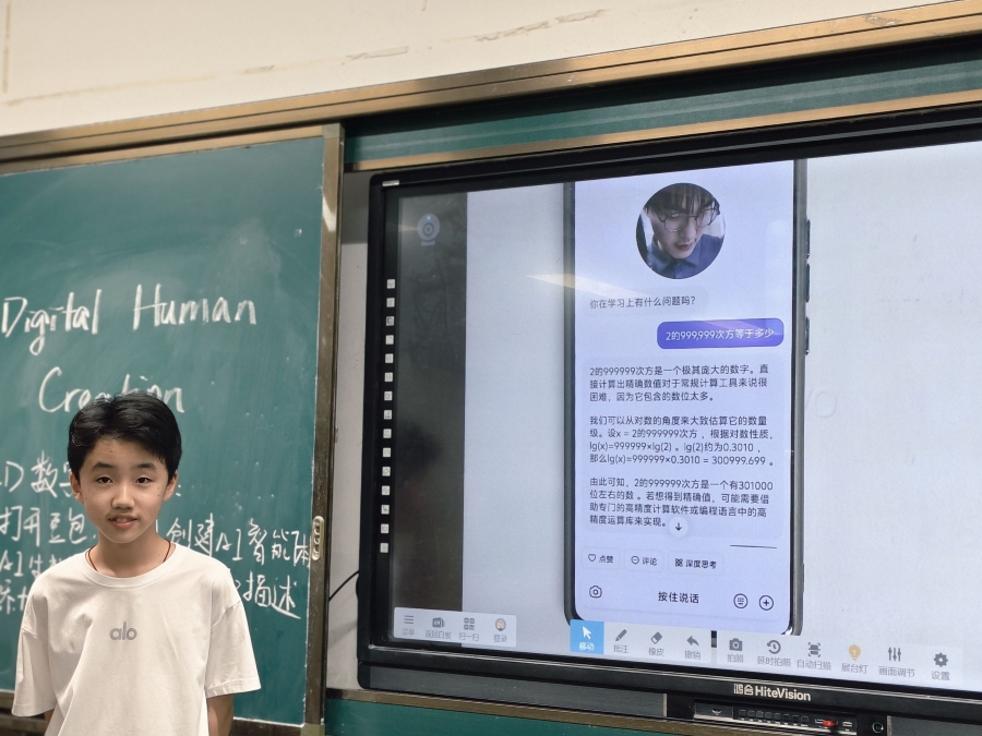 圖為同學分享自制數字人。朱蘇丹 攝