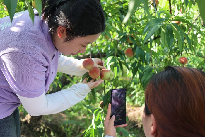 隊員們走進生機勃勃的田園,開啟了豐富多彩的農事體驗活動。在水蜜桃種植園里,一個個飽滿多汁的水蜜桃掛滿枝頭,散發著誘人的香氣。隊員們穿梭在桃林間,按照果農傳授的方法,挑選成熟的桃子,摘下放入籃中。雖然烈日炎炎,汗水濕透了衣衫,但看著一筐筐豐碩的果實,大家的臉上洋溢著喜悅的笑容。