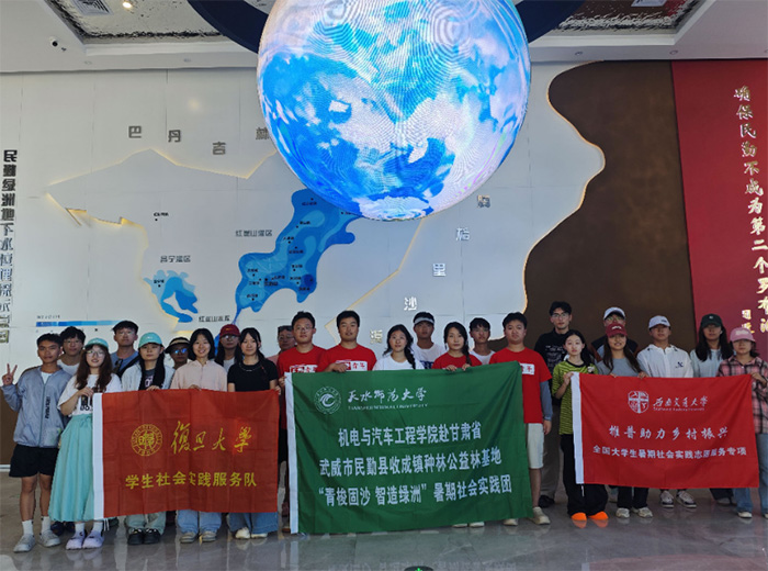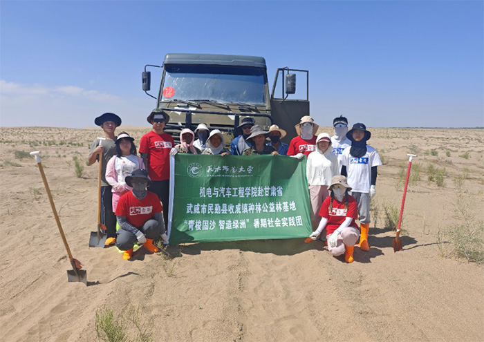 為深入貫徹落實鄉村振興戰略與生態文明建設要求,2025年7月24日至29日,天水師范大學機電與汽車工程學院“青梭固沙,智造綠洲”實踐隊赴甘肅省武威市民勤縣收成鎮種林公益林基地,開展了為期五天的暑期“三下鄉”社會實踐活動。團隊以“防沙治沙、助農興農、文化傳承”為核心,用青春行動助力民勤“綠進沙退”。
