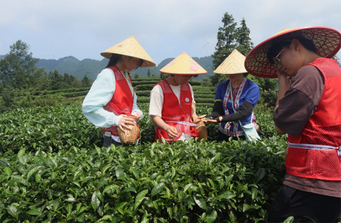 隊員們學著阿姐的樣子嘗試,卻總因用力過猛捏碎了茶葉。“這采茶看著簡單,實則藏著侗家人對自然的敬畏。”楊姐說,侗族祖輩傳下的規矩,采茶不能貪多,要給茶樹留足生長的空間,這種“取之有度”的理念,早已融入茶農的日常。陽光下,茶園里的侗族歌謠隨風傳來,茶農們一邊采茶一邊對唱,歌聲與茶葉的清香交織,成了山間最動人的旋律。