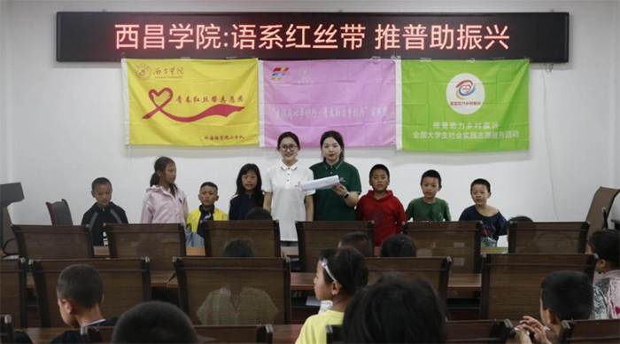 “三下鄉(xiāng)”實(shí)踐團(tuán)也積極行動(dòng),為當(dāng)?shù)厍嗌倌陜和_展普通話推廣與禁毒防艾知識(shí)科普。課堂上,成員們以繞口令、詩詞跟讀等趣味形式,引領(lǐng)孩子們?cè)跉g聲笑語中學(xué)說普通話,搭建起溝通交流的橋梁;圍繞禁毒防艾主題,通過制作紅絲帶傳遞善意,深入淺出講解知識(shí),幫助孩子們筑牢預(yù)防與防護(hù)意識(shí),全力守護(hù)青春健康。