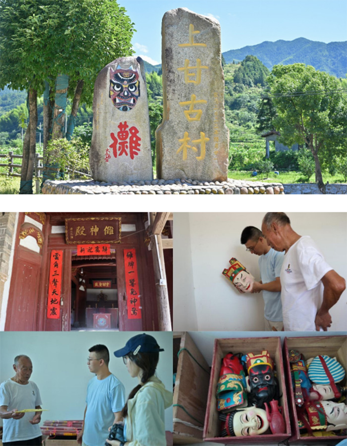 實踐隊專門尋訪了上甘村第26代儺舞傳承人甘永福老先生。在甘老先生的帶領下,隊員們走進了江西現存最古老的儺神殿之一。神殿中莊嚴的儺面具,仿佛無聲地訴說著非遺儺舞文化代代傳承的故事,讓隊員們直觀地感受到了儺舞文化的源遠流長和獨特魅力。